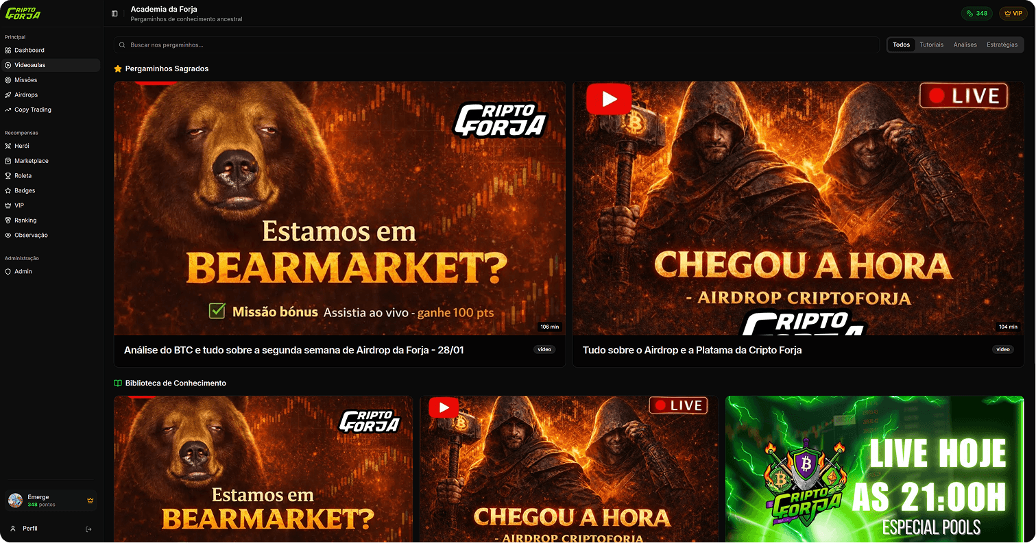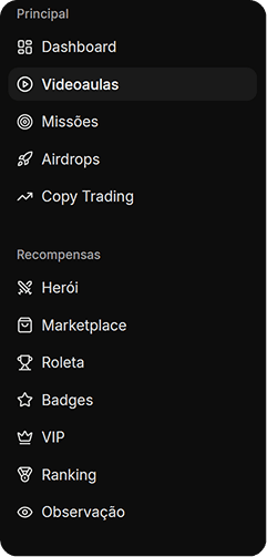 Uma plataforma completa de aprendizado, prática e evolução no mercado cripto. Aqui, conhecimento não fica parado: ele vira ação, estratégia e progresso real dentro de um ecossistema gamificado.